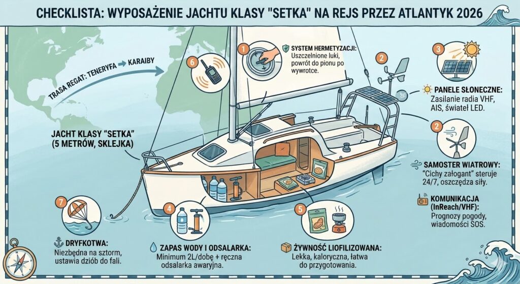 Warto podkreślić, że Setka nie jest jachtem, który wybacza błędy w przygotowaniu. Co więcej, każdy element wyposażenia musi być lekki i niezawodny, ponieważ na tak małej powierzchni skipper żyje w rytmie oceanu, niemal dosłownie dotykając tafli wody. W konsekwencji człowiek i ta niewielka, sklejkowa konstrukcja tworzą jeden organizm, w którym determinacja kapitana jest równie ważna, co solidność kadłuba. Dlatego właśnie te łódki tak fascynują – są dowodem na to, że do pokonania oceanu nie potrzeba milionów, lecz pasji i rzetelnego rzemiosła.